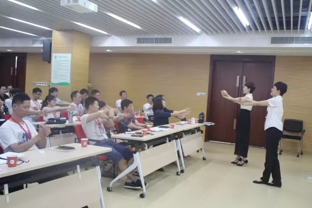 課間休息時(shí)間,華儀學(xué)院外訓(xùn)部負(fù)責(zé)人王曼秋老師帶領(lǐng)大家做手指操。
