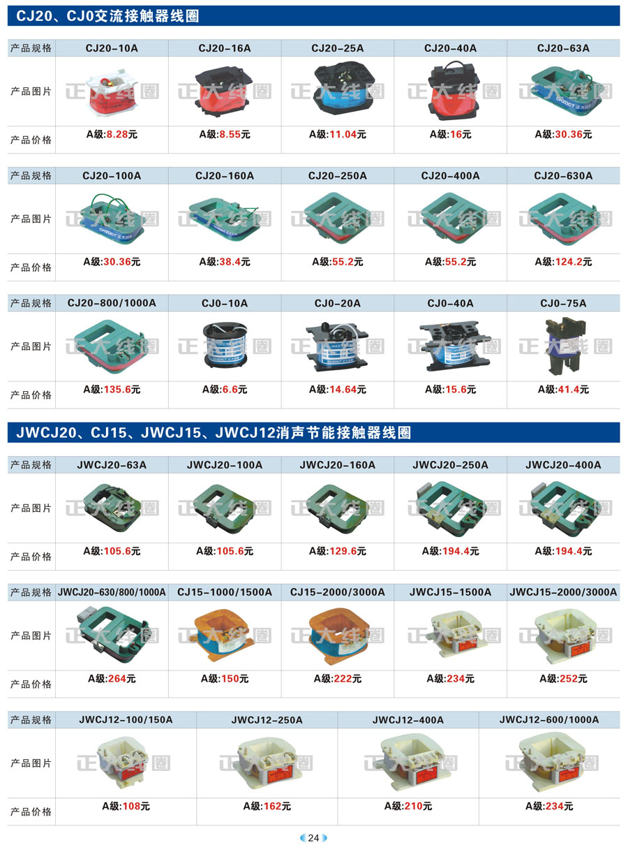 CJ20、CJ0交流接觸器線圈、JWCJ20、CJ15、JWCJ15、JWCJ12消聲節(jié)能接觸線圈